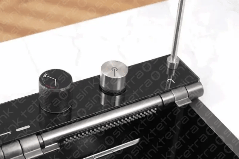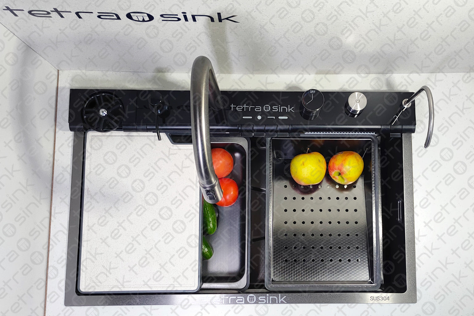 A Tetra Sink multifunctional kitchen sink is the best solution for a modern kitchen. Enjoy a kitchen sink with luxury, a nano sink with an innovative design, a multi-functional kitchen sink, a sink with a waterfall mixer and many kitchen accessories: a draining basket, a cutting board, an automatic cup washer and more.