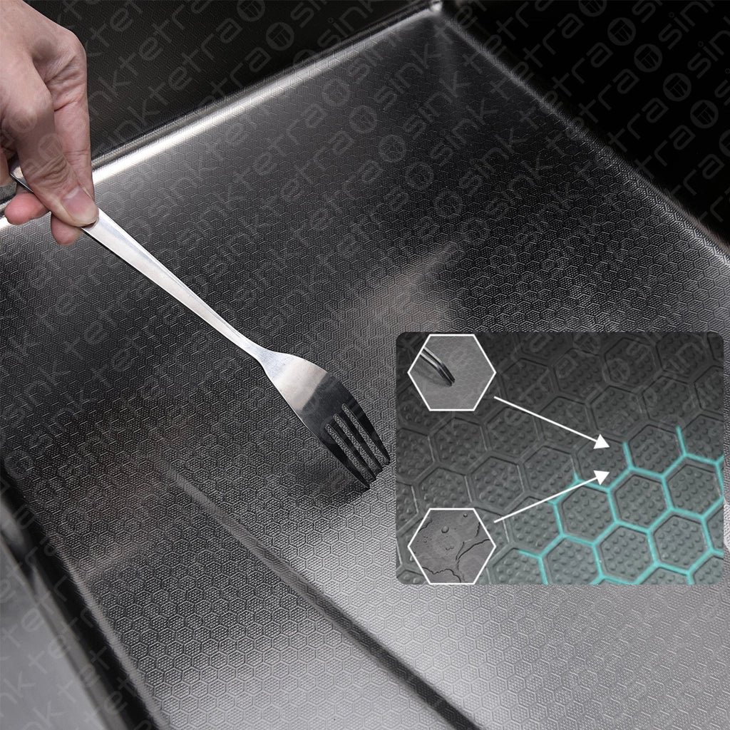 Our nano-platinum coating prevents water and oil stains, and adds durability by resisting wear and scratches. The honeycomb design not only enhances durability but also gives the sink a unique and elegant look.