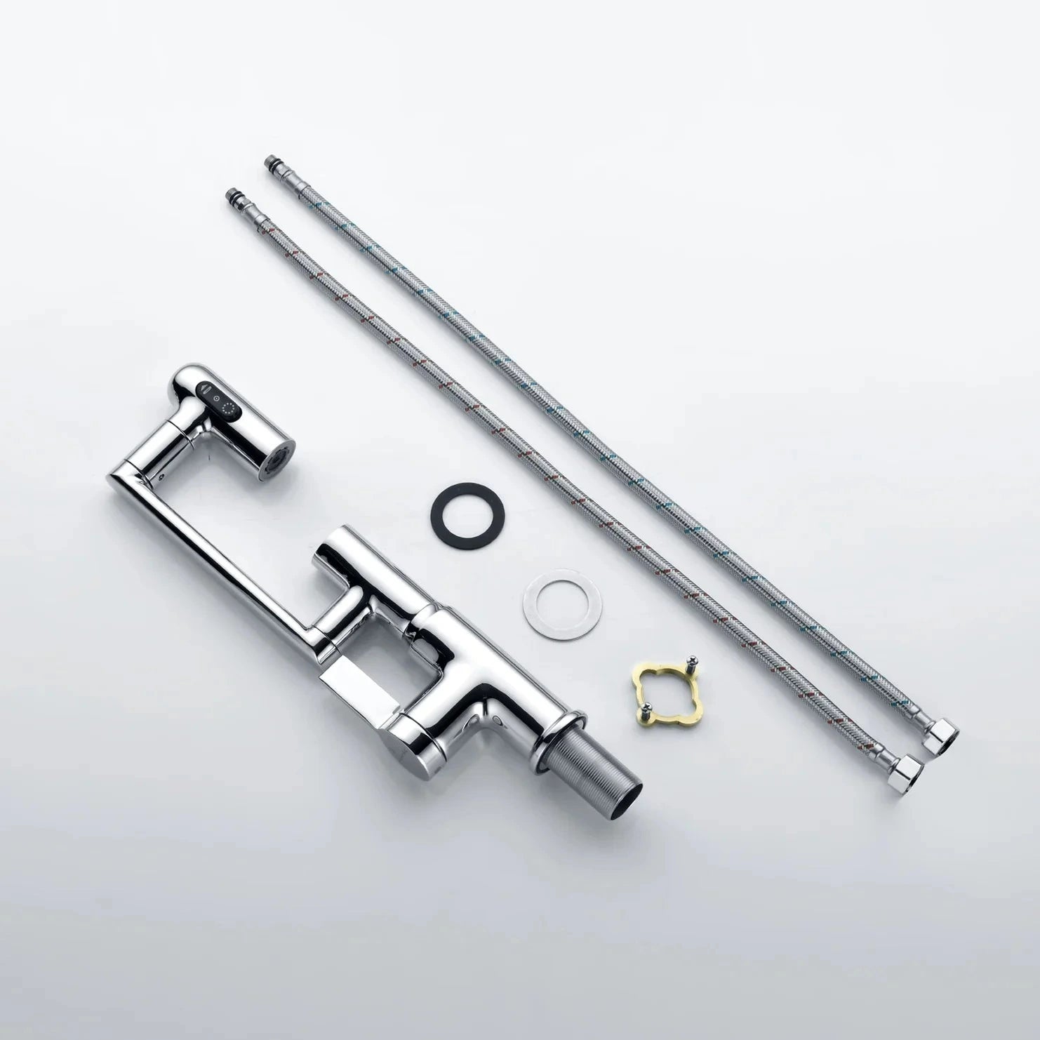 - Three-function Pull-down Spray Head: Easily switch between aerated stream, swing, and boost.