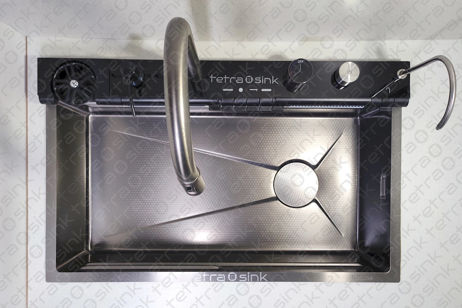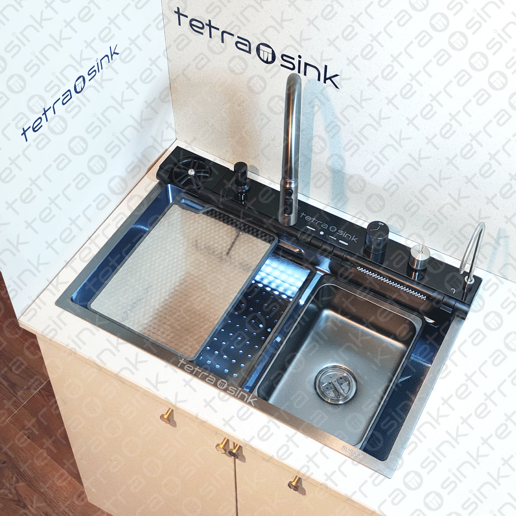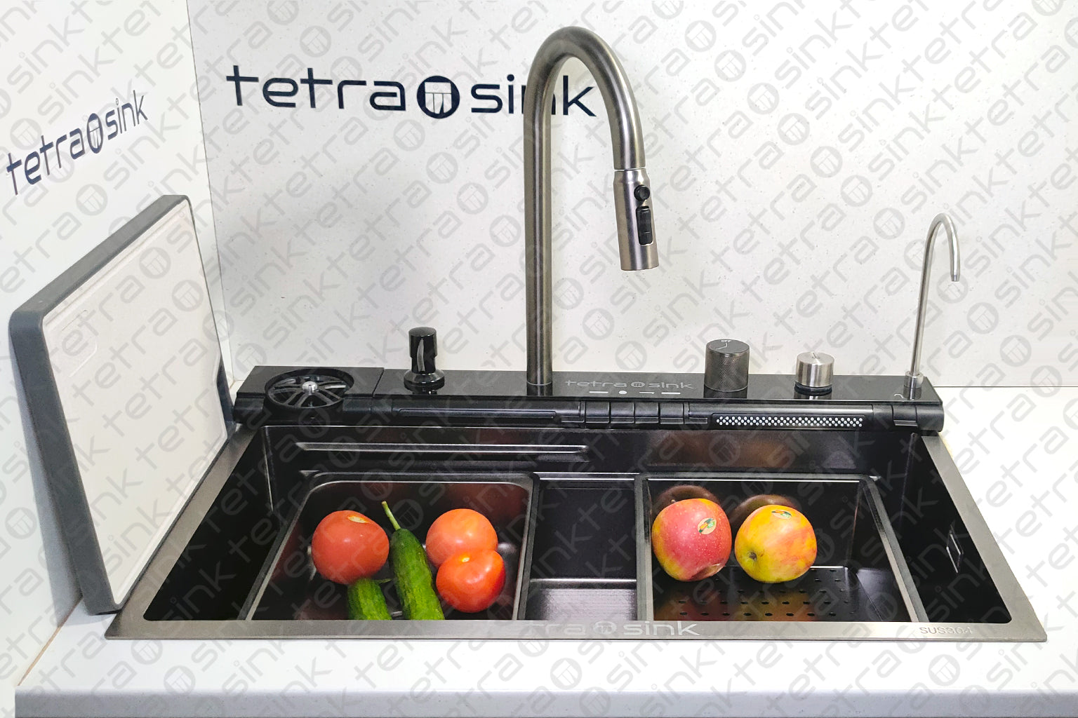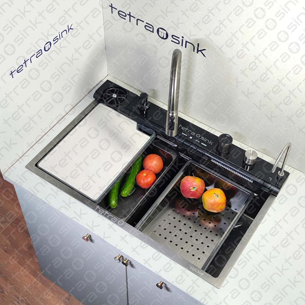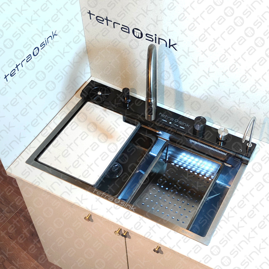 A Tetra Sink multifunctional kitchen sink is the best solution for a modern kitchen. Enjoy a kitchen sink with luxury, a nano sink with an innovative design, a multi-functional kitchen sink, a sink with a waterfall mixer and many kitchen accessories: a draining basket, a cutting board, an automatic cup washer and more.
