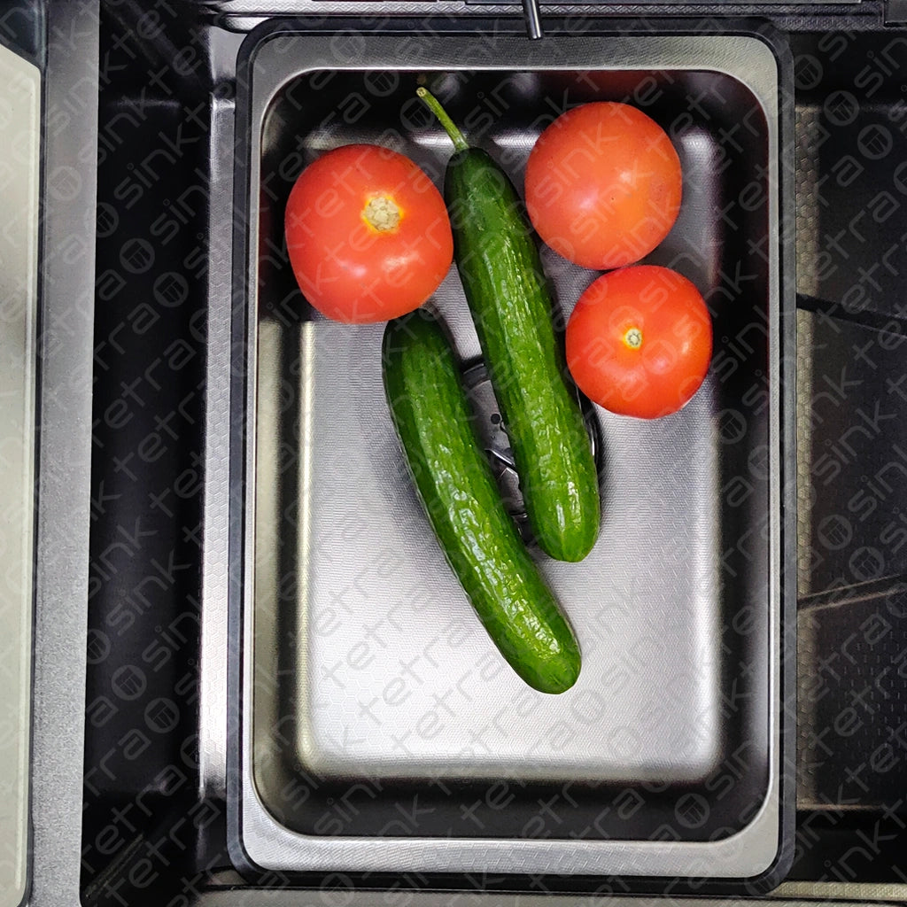 With Tetra Sink, you not only get convenience in dishwashing but also a personalized workspace for food preparation. Included accessories such as a cutting board made of solid wood, a movable basin, and a draining basket facilitate daily tasks in the kitchen, making it even more flexible and functional.