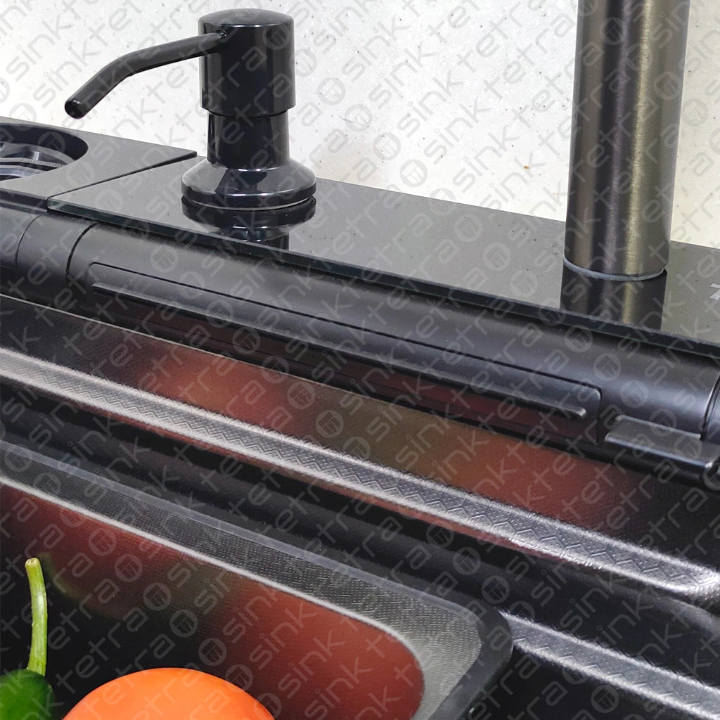 Tetra Sink is an innovative and stylish multifunctional kitchen sink, representing the contemporary fusion of aesthetics and functionality. This kitchen sink captures attention not only with its built-in waterfall, providing a sense of luxury to the kitchen, but also with its accessories, making it a true multifunctional device.