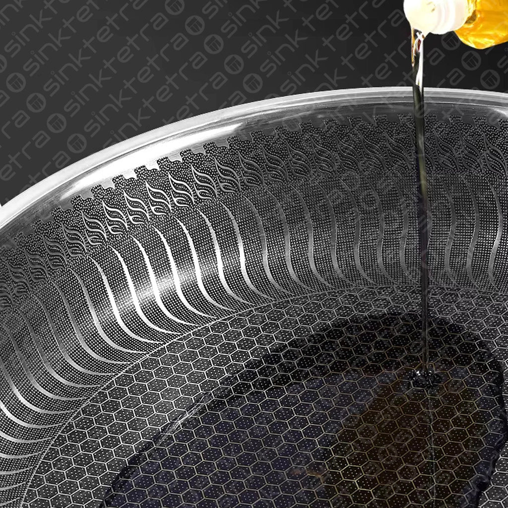 Our nano-platinum coating prevents water and oil stains, and adds durability by resisting wear and scratches. The honeycomb design not only enhances durability but also gives the pan a unique and elegant look.