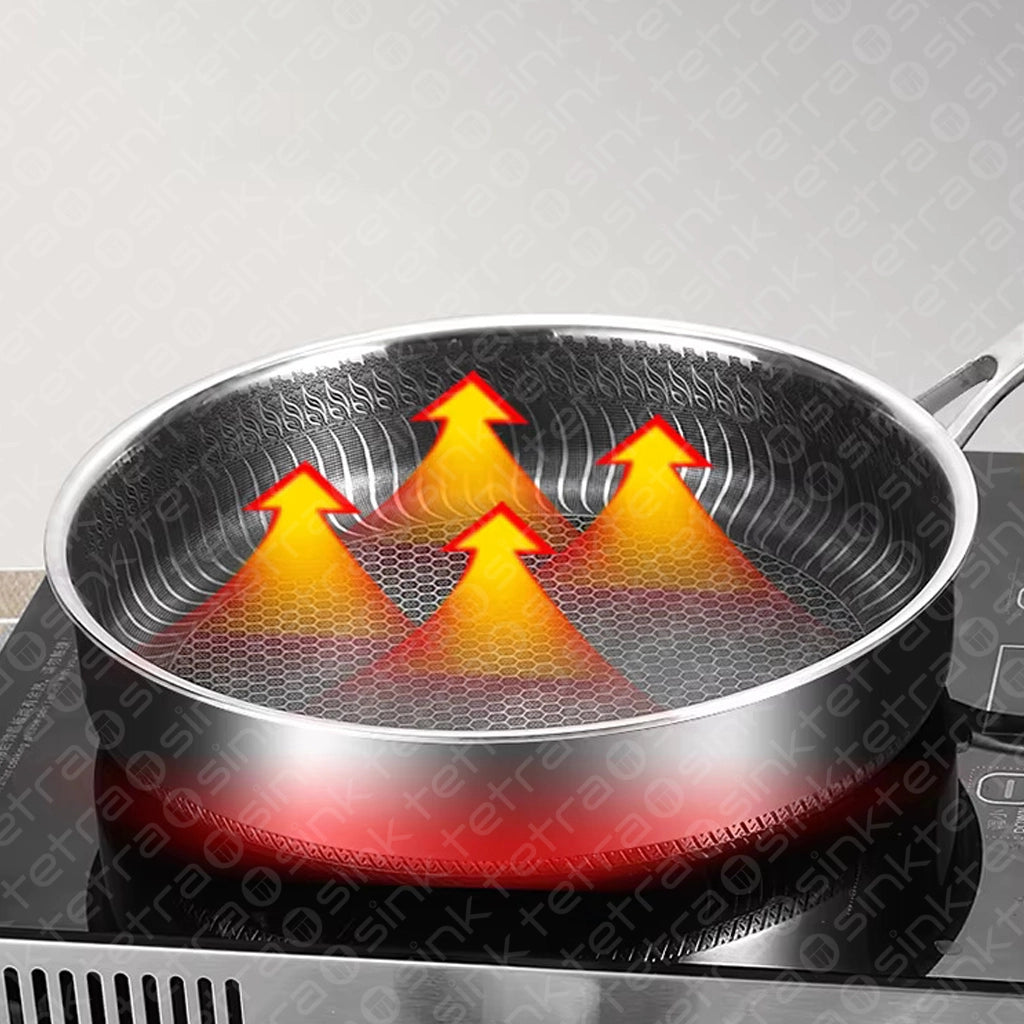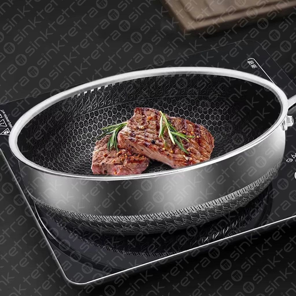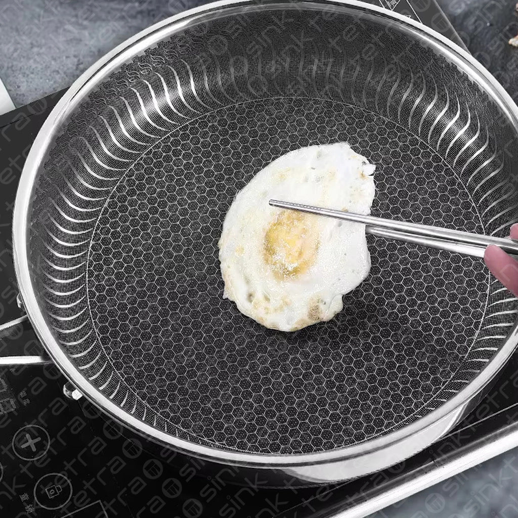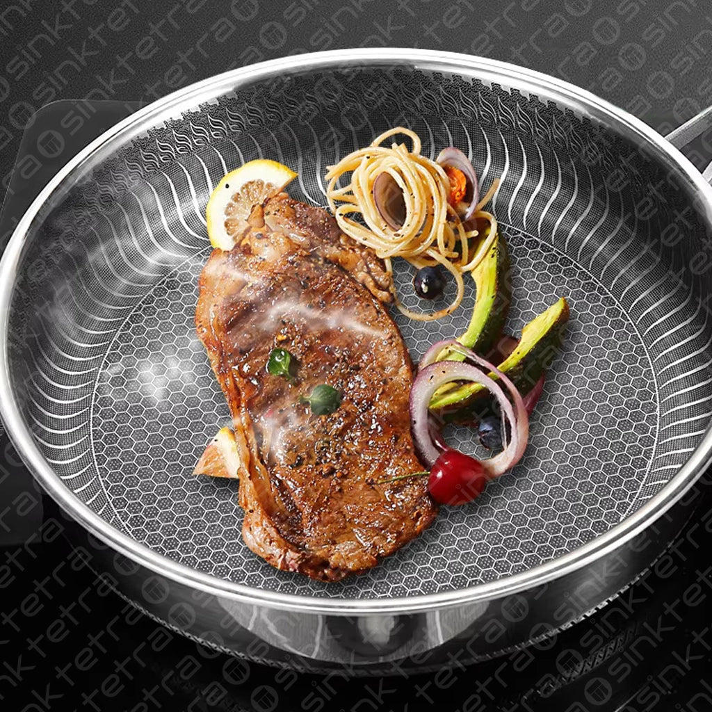 Non-Stick Steel Frying Pan 316 Stainless Steel | TetraSink Panhex | 3D Honeycomb nano platinum coating
