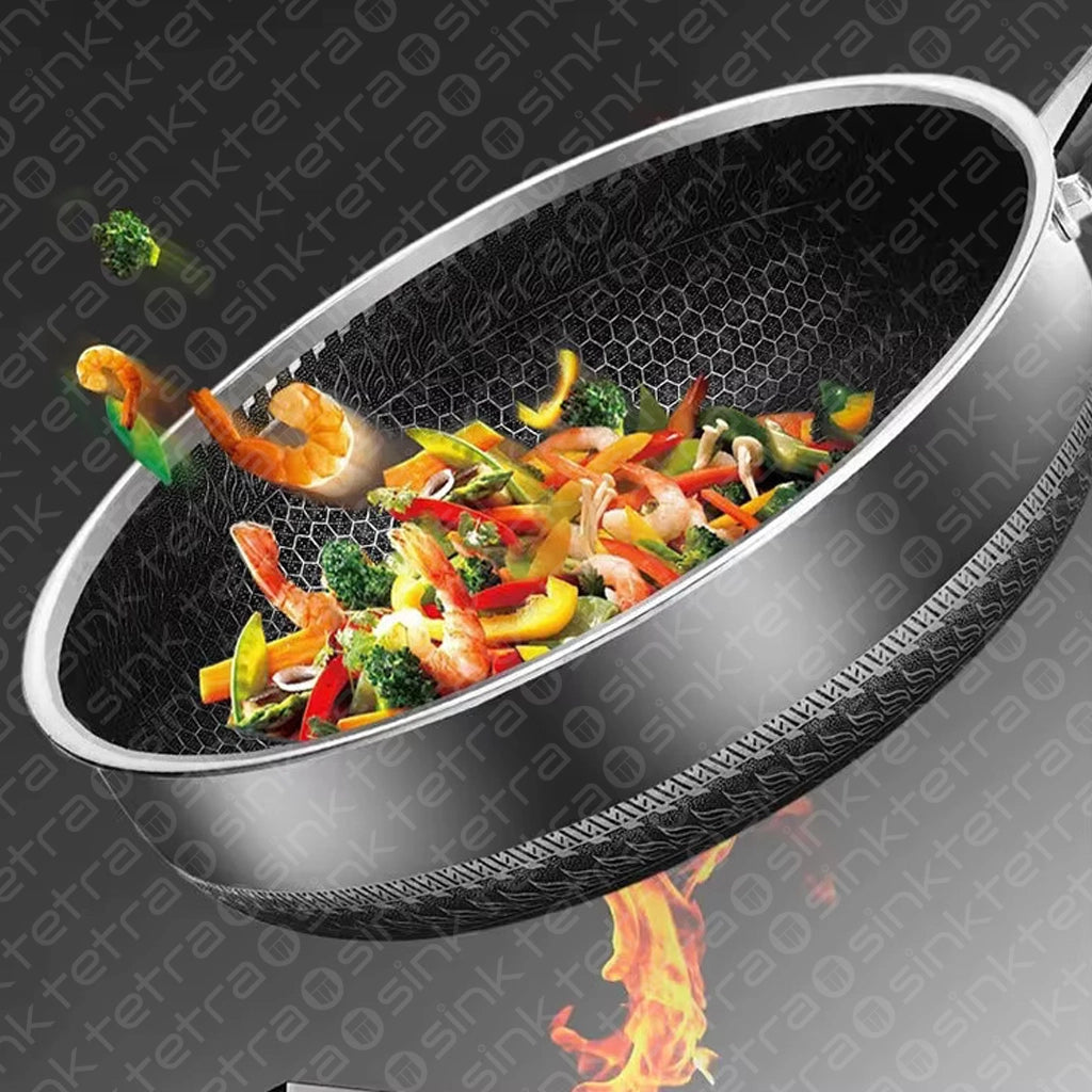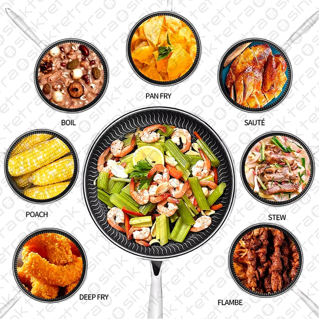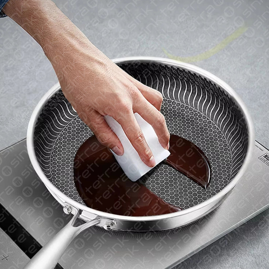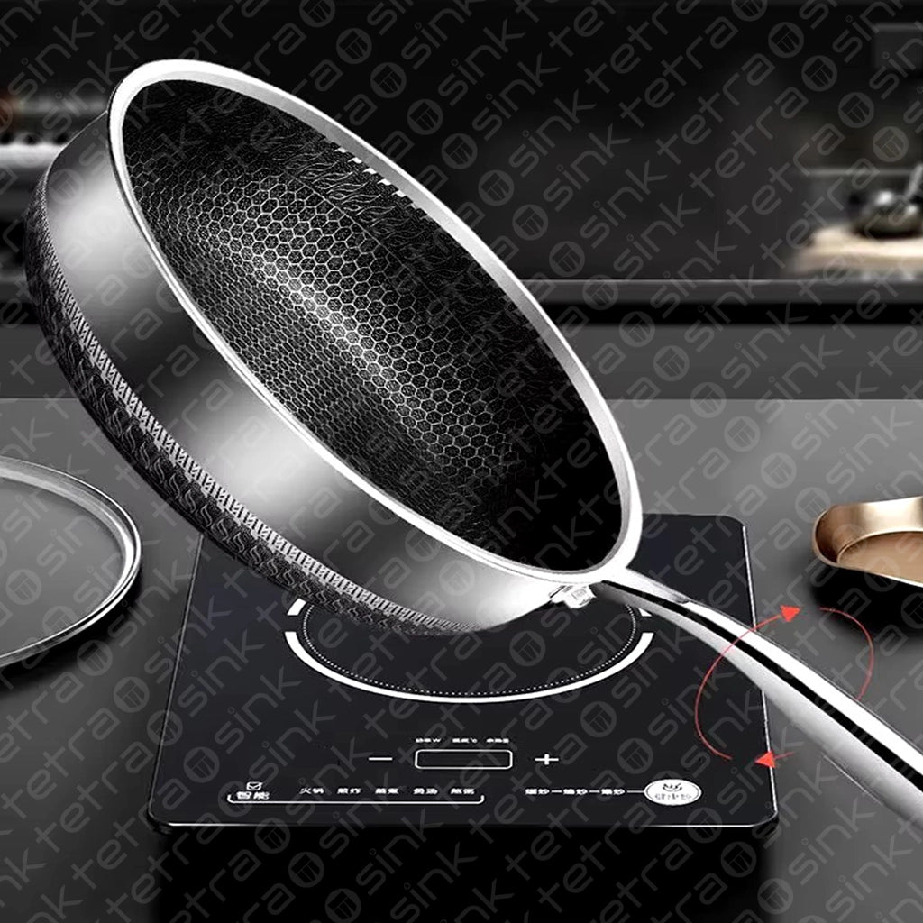 Non-Stick Steel Frying Pan 316 Stainless Steel | TetraSink Panhex | 3D Honeycomb nano platinum coating