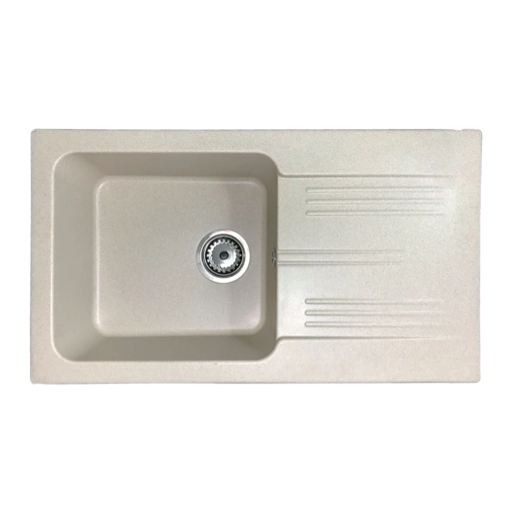 Model: ADA – A single-bowl granite kitchen sink with side drying rack, combining elegance and functionality.