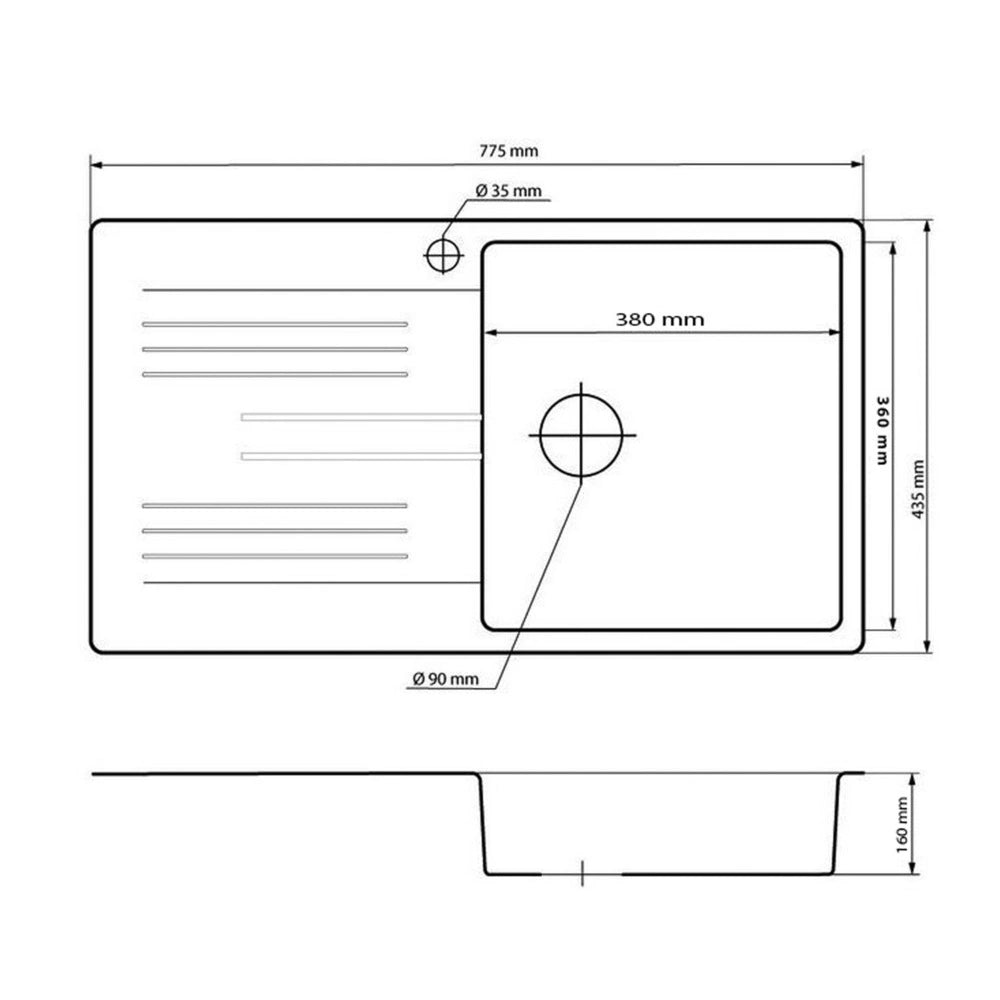 Dimensions: 775 x 435 mmBowl Depth: 160 mm